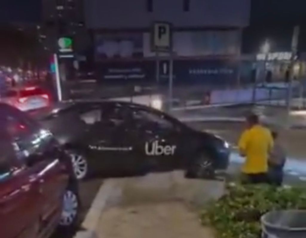 Es curioso ver cómo con viajeros sube a la acera y queda así el vehículo, no es casualidad es una falta de profesionalidad y compromiso para el buen hacer que si hacen los taxis tradicionales pese que sean de la época de los neandertales.
